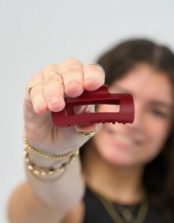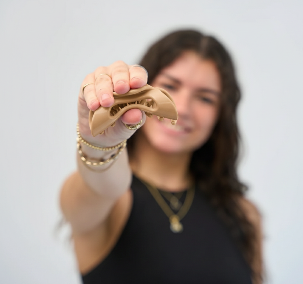 Naša sponka je zasnovana tako, da se odlično obnese pri večini tipov las — od tankih do gostih, ravnih do kodrastih. Če imaš zelo dolge ali izjemno bujne lase, se ti lahko trenutna velikost zdi nekoliko premajhna za popolno speto pričesko. Kljub temu aktivno razvijamo manjše in večje velikosti, da bodo primerne za še več stilov in tekstur — ostani z nami!
