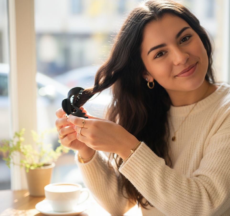 Udobna in prožna sponka, ki ne poškoduje las ter ohranja tvoj videz popoln – od jutra do večera.